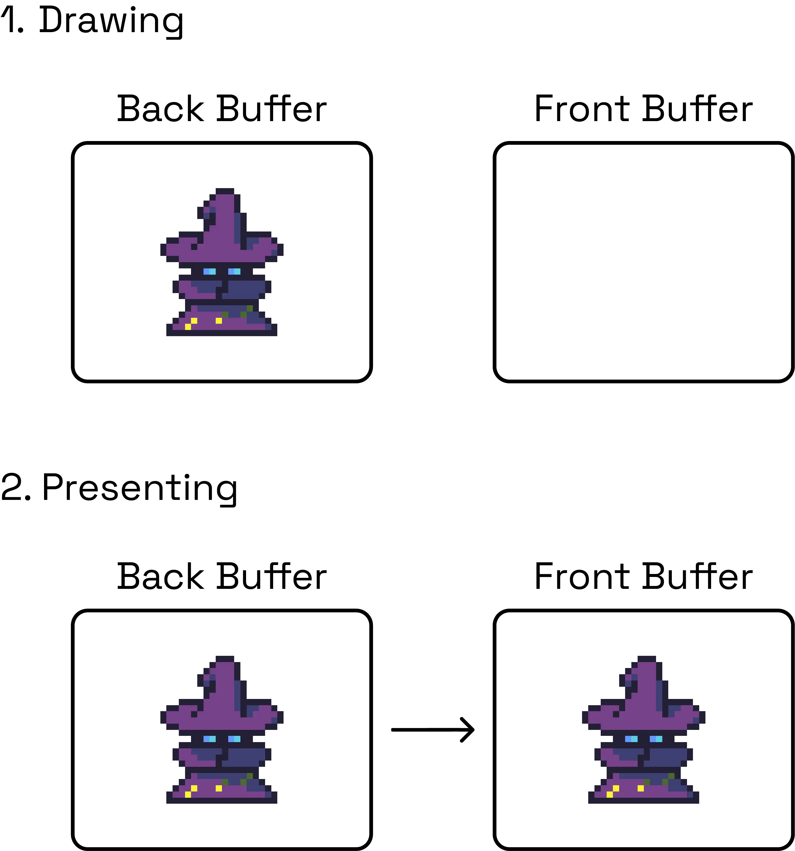 Imagine a personal stage crew for your game window. Each frame, you give them instructions: